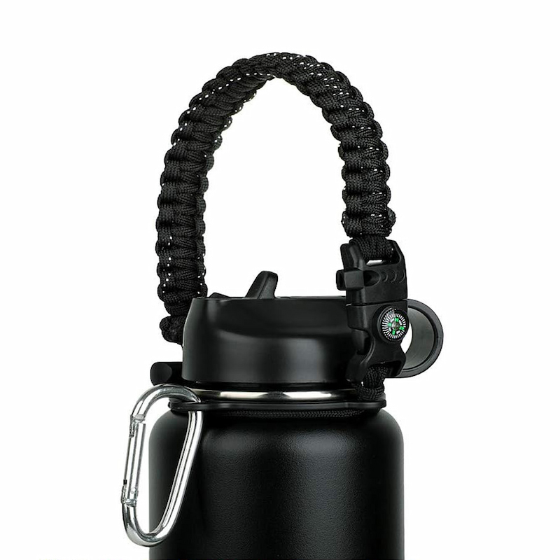 It is woven with high-strength nylon climbing ropes, providing a comfortable grip and anti-slip performance. It is sturdy and durable, not afraid of breaking. It comes with a metal climbing buckle and can be easily hung on a backpack, belt or even a bicycle handlebar. It's convenient to carry a cup for commuting, fitness or outdoor hiking. It also hides a mini compass, which is extremely practical for emergencies during outdoor trips!